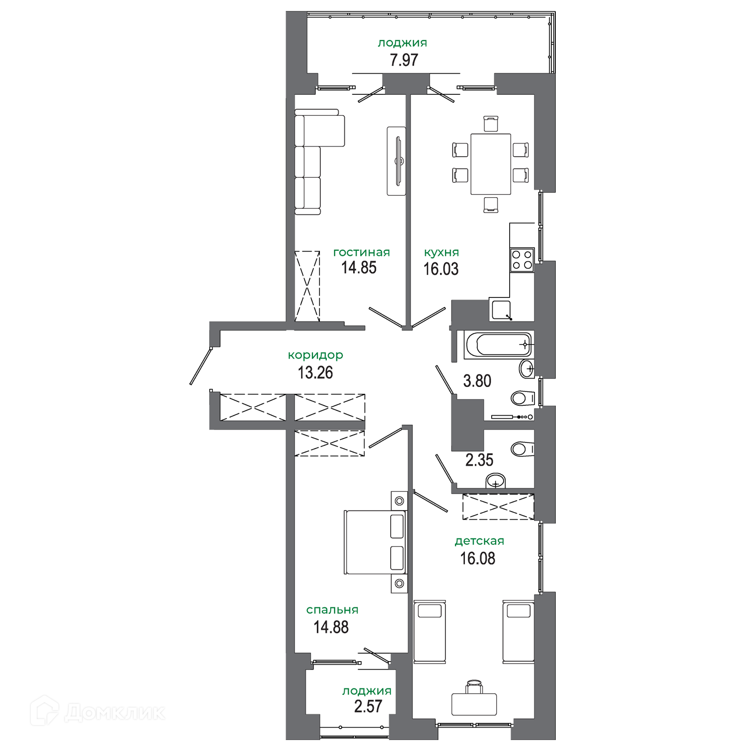 Площади квартир