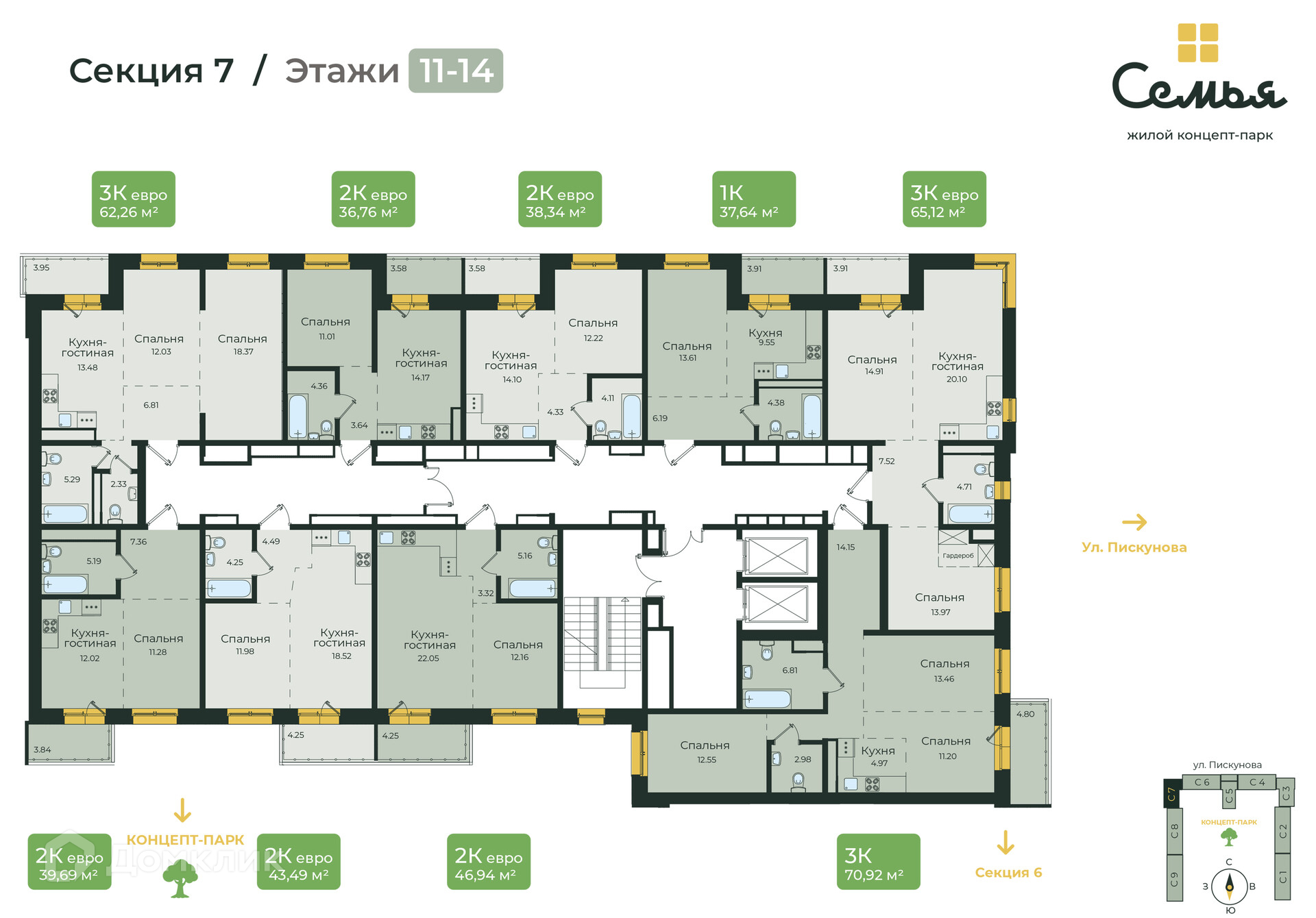 \*_Жилой концепт-парк «Семья» – это БОЛЬШЕ, чем просто жилой комплекс! \*_ **ЖК «Семья» - это проект бизнес-класса, расположенный в перспективном Октябрьском районе г. Иркутска.** В ЖК «Семья» комфортное пространство не ограничивается стенами квартиры, а продолжается в просторных подъездах с выходом в зеленый концепт-парк. 5 функциональных зон концепт-парка идеально подходят жителям всех возрастов: дети, спорт, отдых, маршруты и парк. **О проекте:** - 7 минут до исторического центра города - Свой парк и футбольное поле во дворе для жителей - Продуманная инфраструктура для комфорта: магазины, кафе, доставка еды, медицинские услуги на 1 этажах домов - Авторский дизайн подъездов, колясочные - Большие окна и панорамное остекление на лоджиях - 25 уникальных планировок: от 30 до 111 кв.м. евроформата и с классической кухней - Безопасность: огороженная территория, видеокамеры снаружи и внутри - Бизнес-технологии: приложение для жителей, современные инженерные системы и технологии - Подземный паркинг и отдельное здание открытого паркинга **Актуальное наличие и стоимость квартир на сайте: семья-жк.рф и по телефону отдела продаж 8 (3952) 95-99-00.**