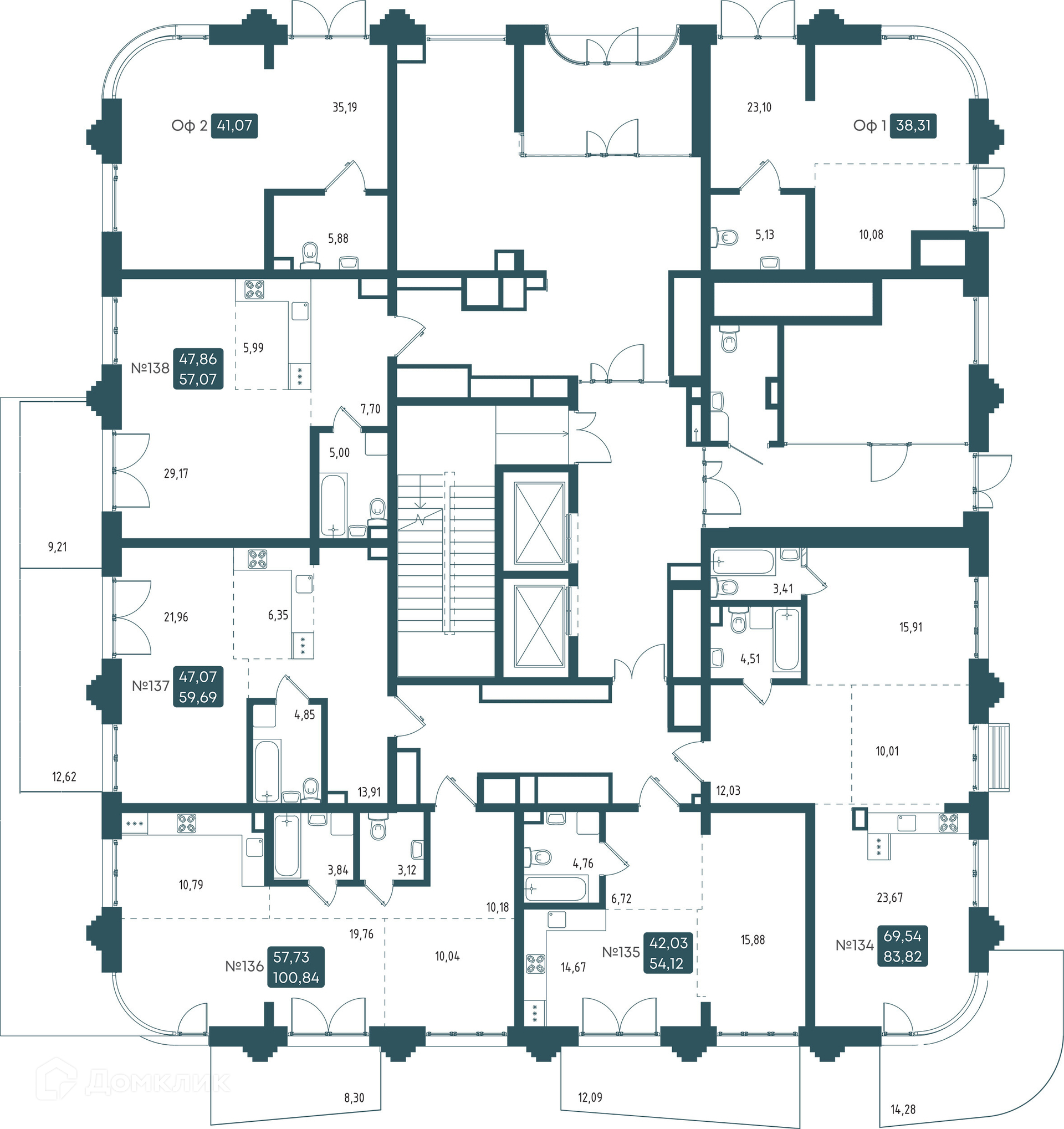 Площади квартир