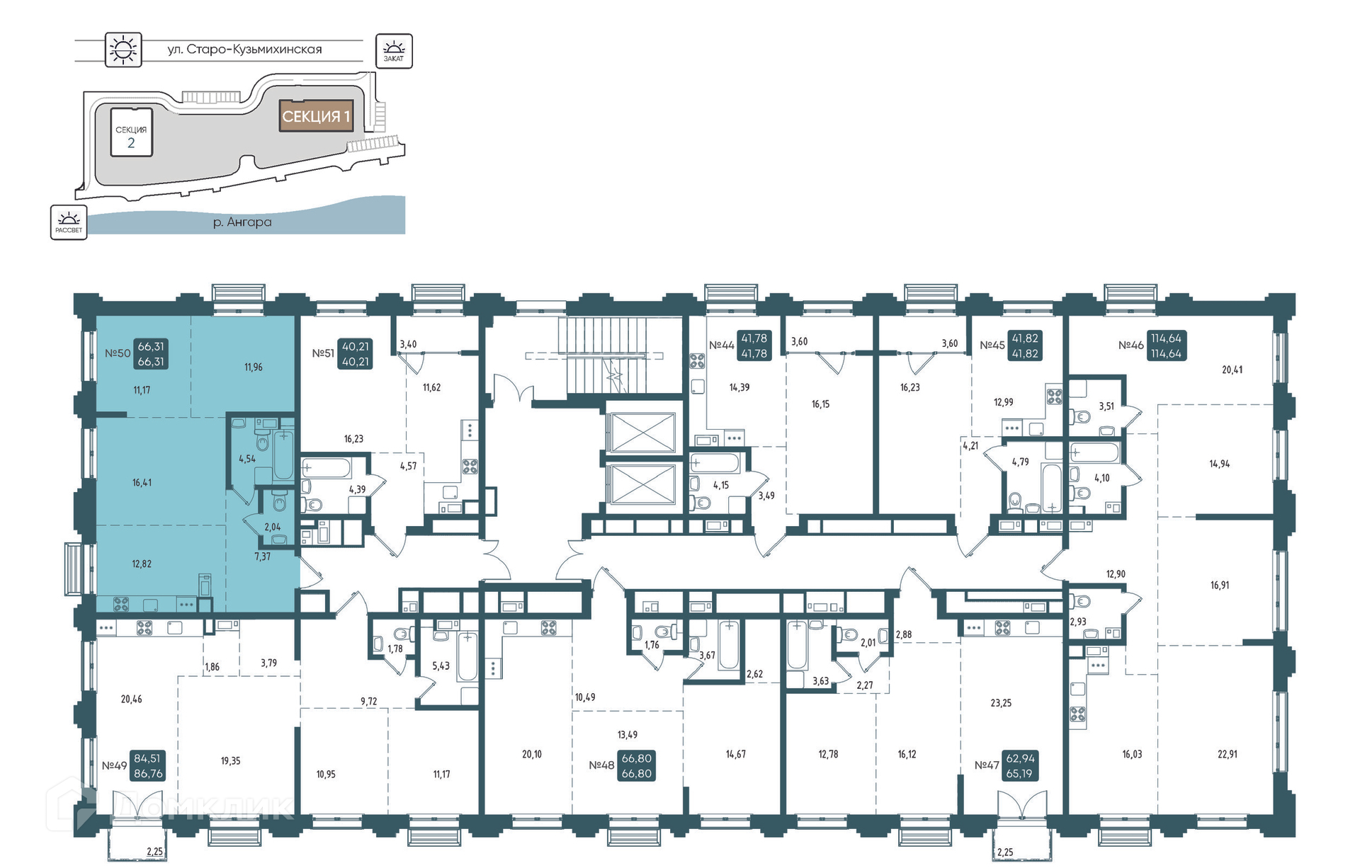 Площади квартир