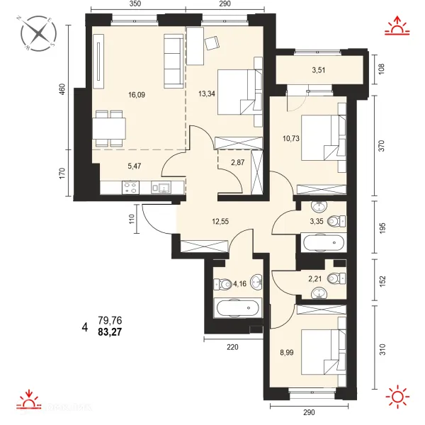 4 комн. квартира в Иркутске в ипотеку от 79 283 руб/месяц