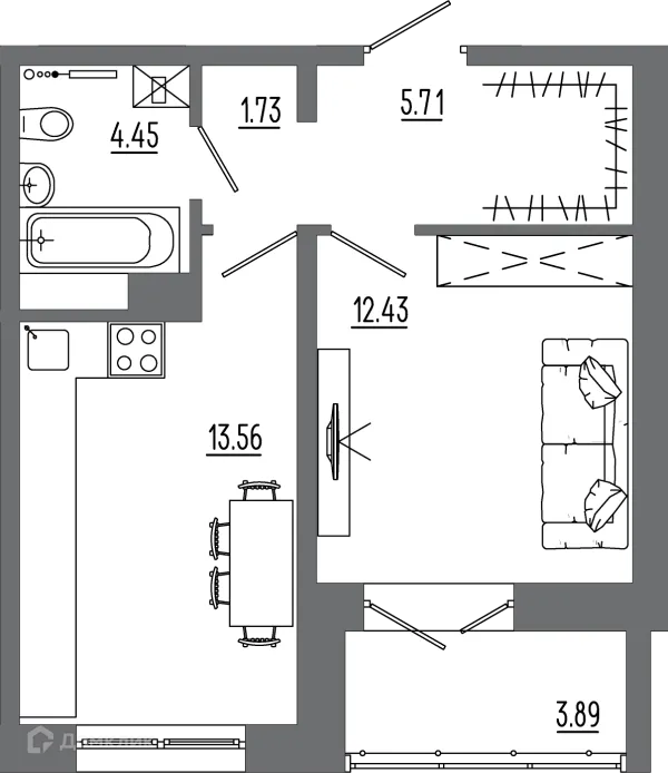 1 комн. квартира в Иркутске в ипотеку от 41 315 руб/месяц